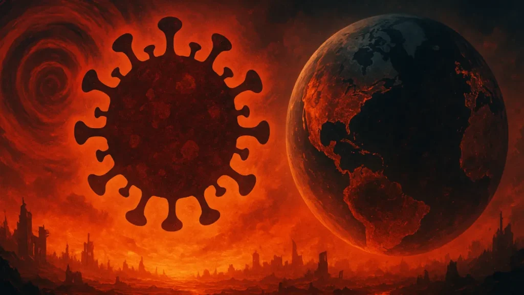 O vírus é apresentado como um gatilho social e biológico. Ele é ao mesmo tempo causa do colapso e ferramenta narrativa que expõe medos sociais.